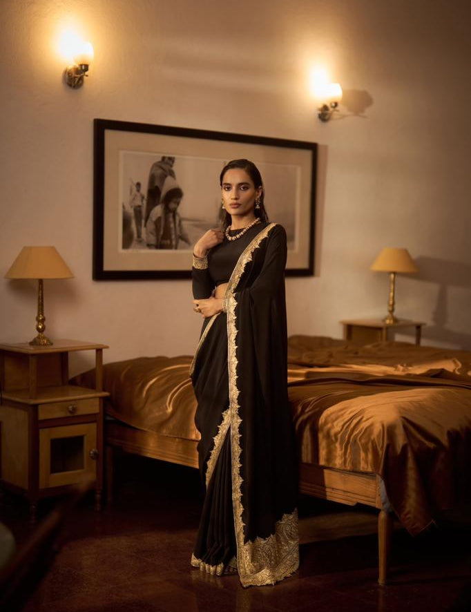 NISHA SAREE WITH EMBROIDERED BLOUSE