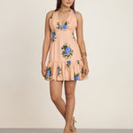 'Persika' peach fit-and-flare silhouette with sleeveless floral mini dress