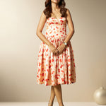 'Nyssa' peach rose printed midi length corset dress