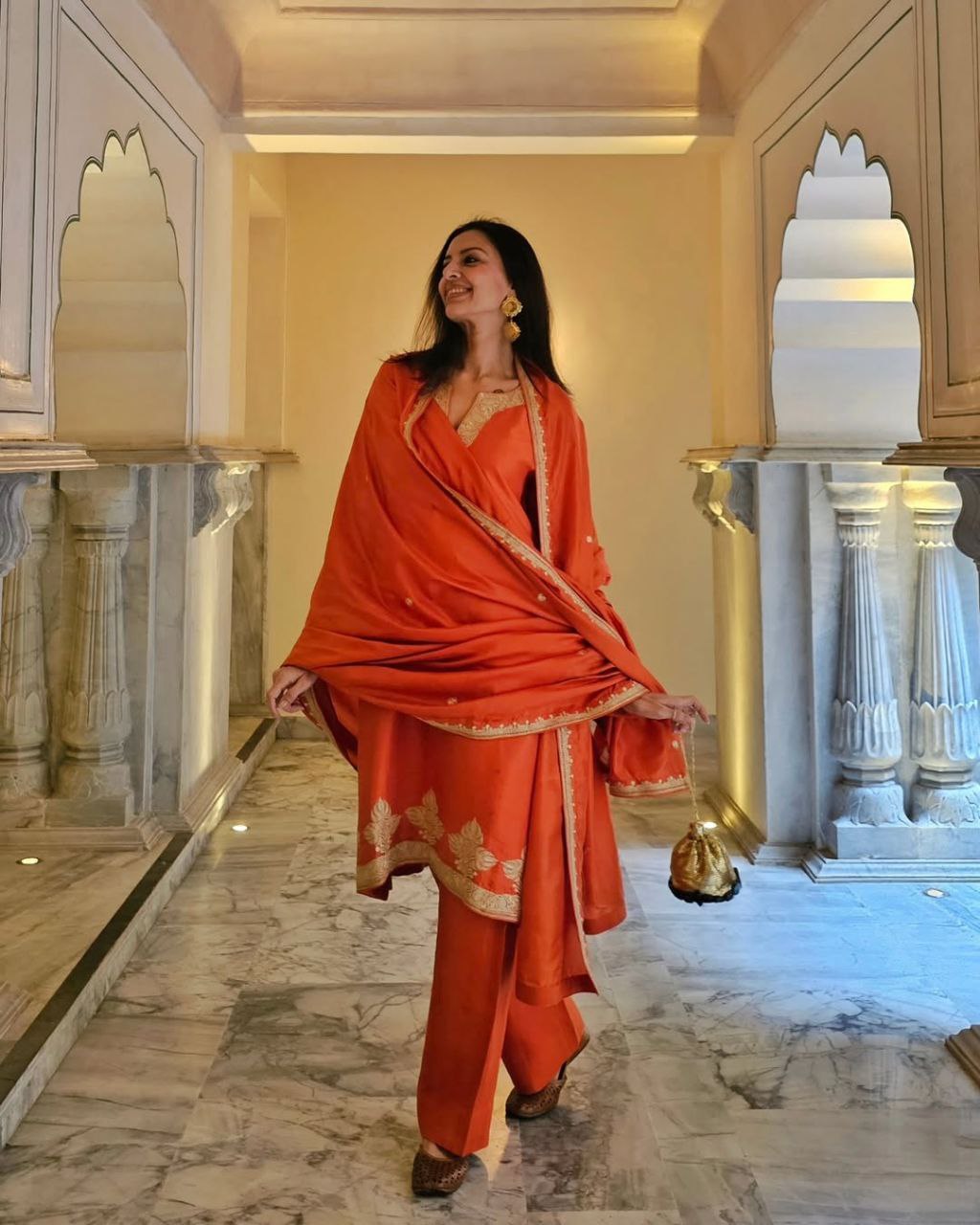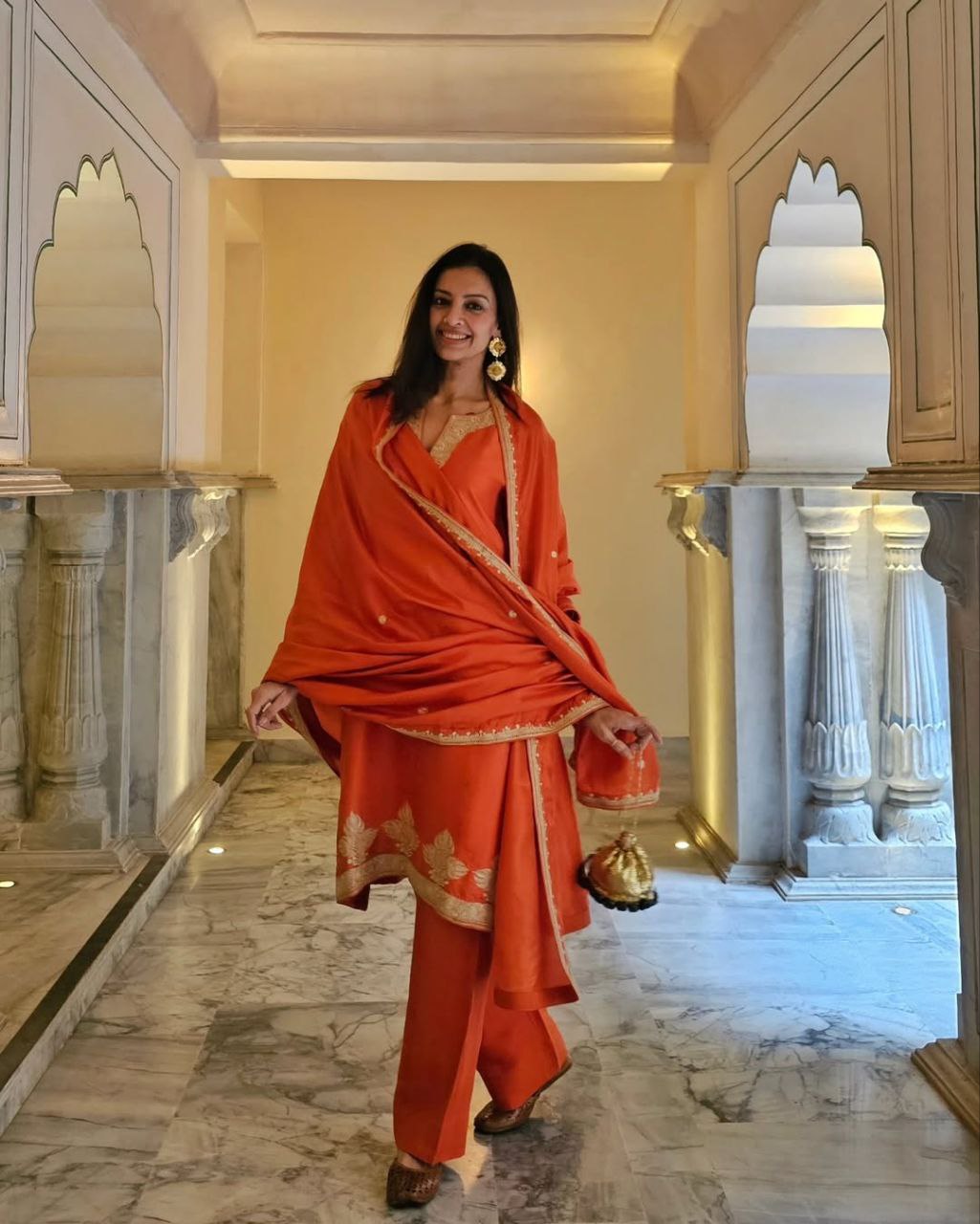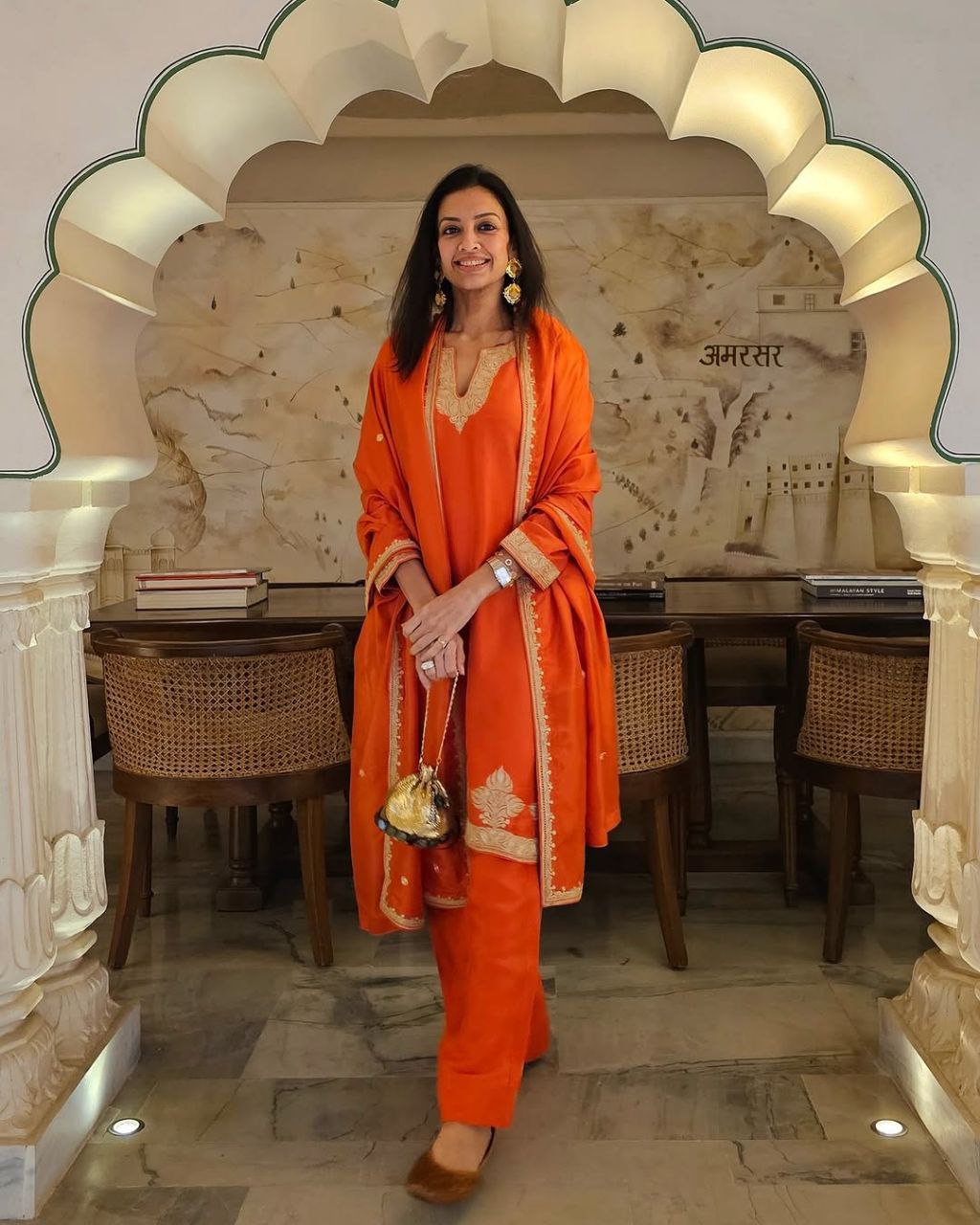 SHWETA MALPANI IN NALIKA ORANGE KURTA SET WITH DUPATTA